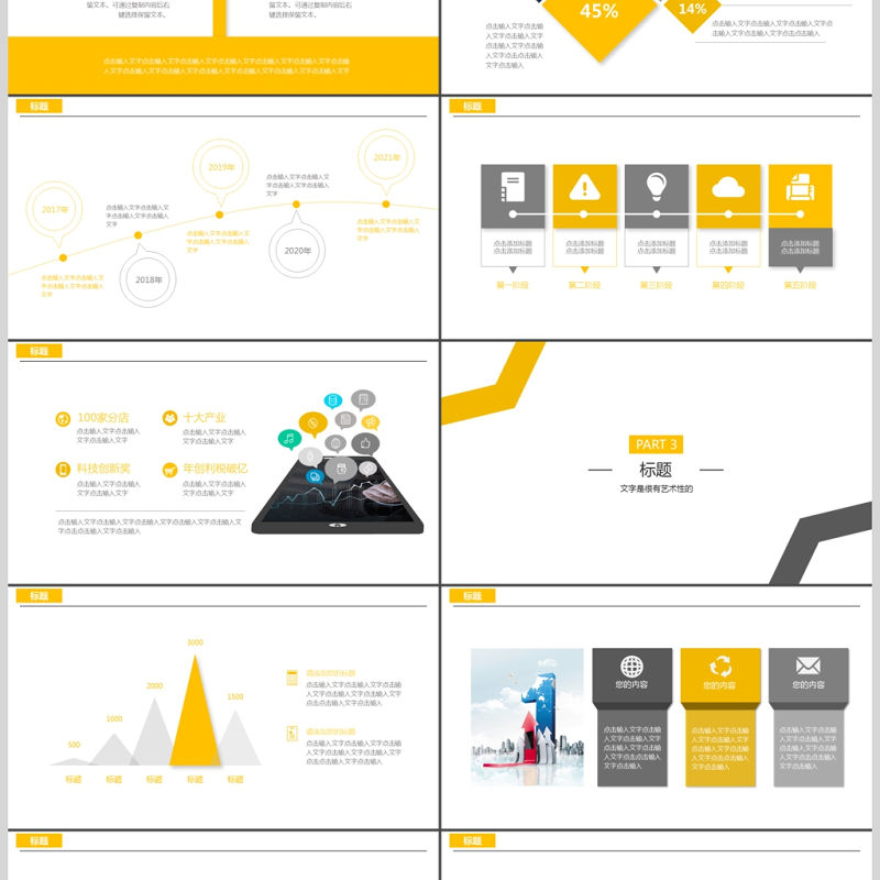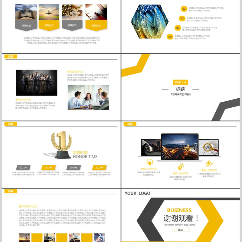 2019黃黑色簡約公司宣傳PPT模板 Array