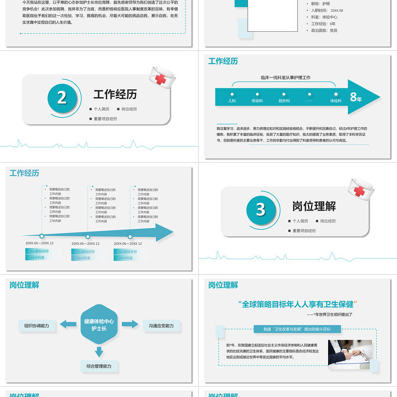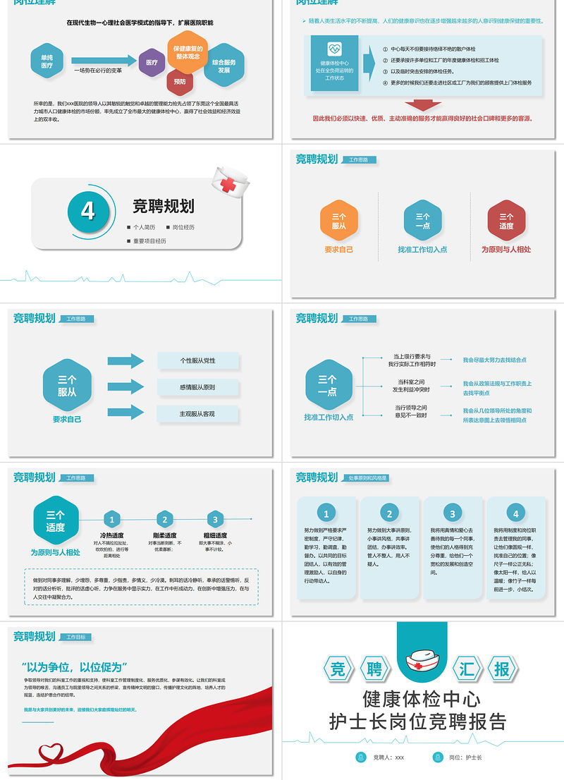 2022健康體檢中心護士長崗位競聘報告PPT簡約大氣競聘專用PPT模板下載 Array