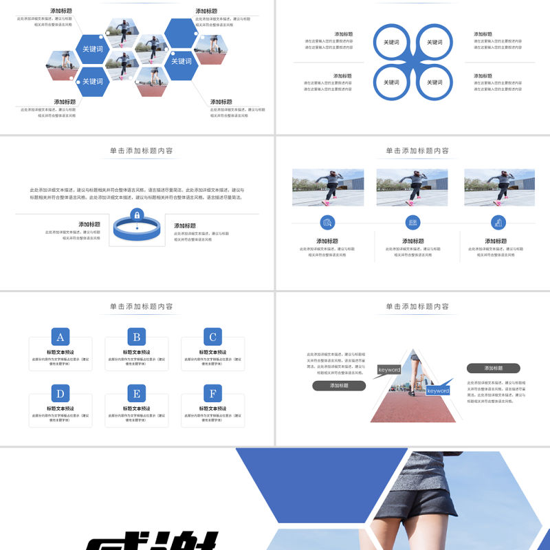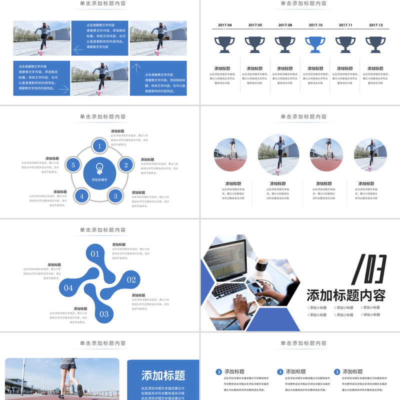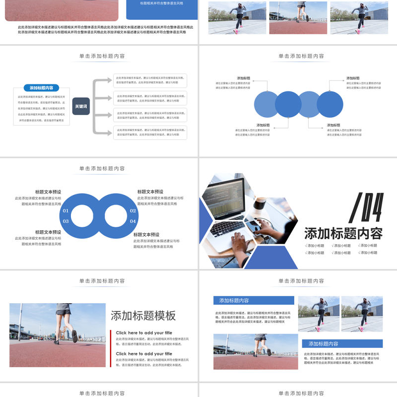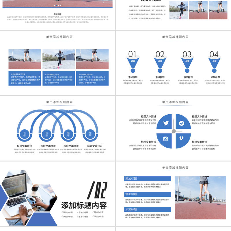原創時尚跑步健身運動跑步田徑運動比賽PPT模板-版權可商用