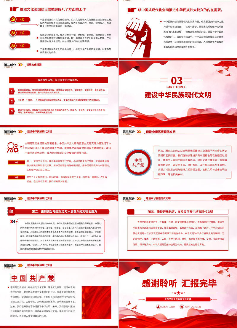 2023更好擔負起新時代新的文化使命PPT大氣精美風黨員干部學習教育專題黨課課件 Array