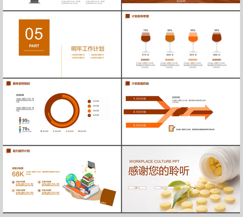 勵志青春奮斗微立體總結匯報動態PPT模板包含