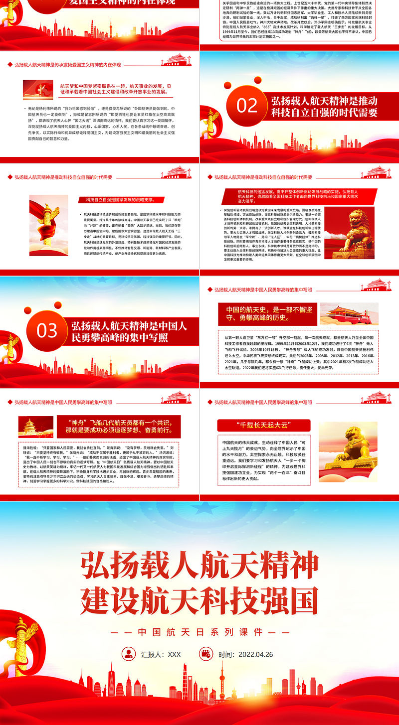 工圖網(wǎng)提供弘揚(yáng)載人航天精神建設(shè)航天科技強(qiáng)國(guó)PPT精品中國(guó)航天日系列課件模板供會(huì)員免費(fèi)下載。更多精彩黨課PPT素材,盡在工圖網(wǎng)。