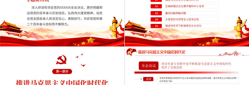 前言PREFACE專題研討班深入研讀和領會黨的XXXXXX全會決議,更好把握和運用黨的百年奮斗歷史經驗,弘揚偉大建黨精神,動員全黨全國各族人民堅定信心、勇毅前行,為實現黨的第二個百年奮斗目標而不懈努力。