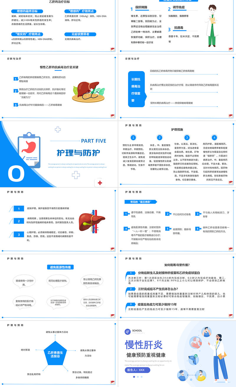 2022慢性肝炎PPT藍色簡約風慢性肝炎知識介紹專題課件模板