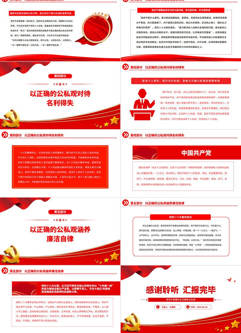 2023黨員干部要樹立正確的公私觀PPT精美大氣黨員干部思想教育專題黨課課件