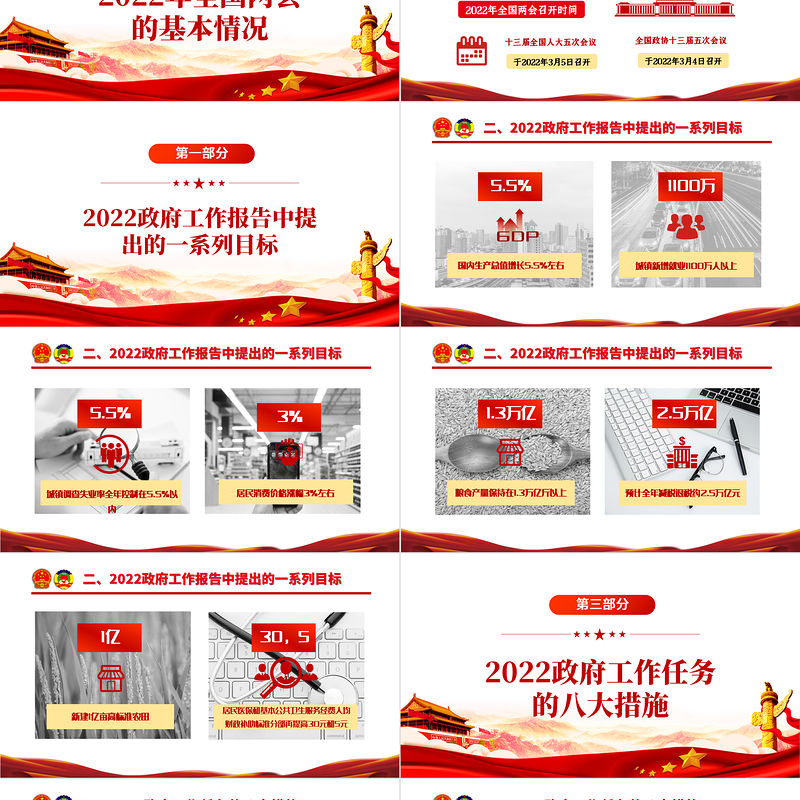 2022政府工作報(bào)告中提出的一系列目標(biāo)22022政府工作任務(wù)的八大措施32022年全國兩會(huì)的基本情況1