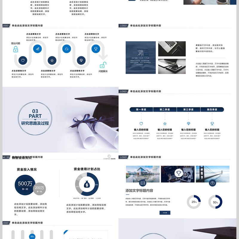 藍(lán)色沉穩(wěn)大氣畢業(yè)論文答辯PPT模板 Array