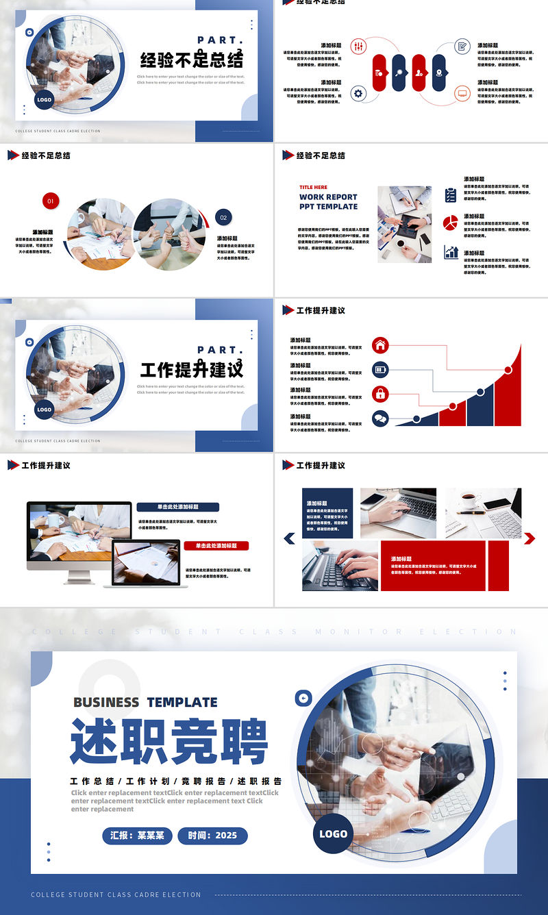 COLLEGE STUDENT CLASS MONITOR ELECTION述職競(jìng)聘LOGOClick enter replacement textClick enter replacement textClick enter replacement textClick enter replacement text Click enter replacement工作總結(jié)/工作計(jì)劃/競(jìng)聘報(bào)告/述職報(bào)告BUSINESS TEMPLATELOGO