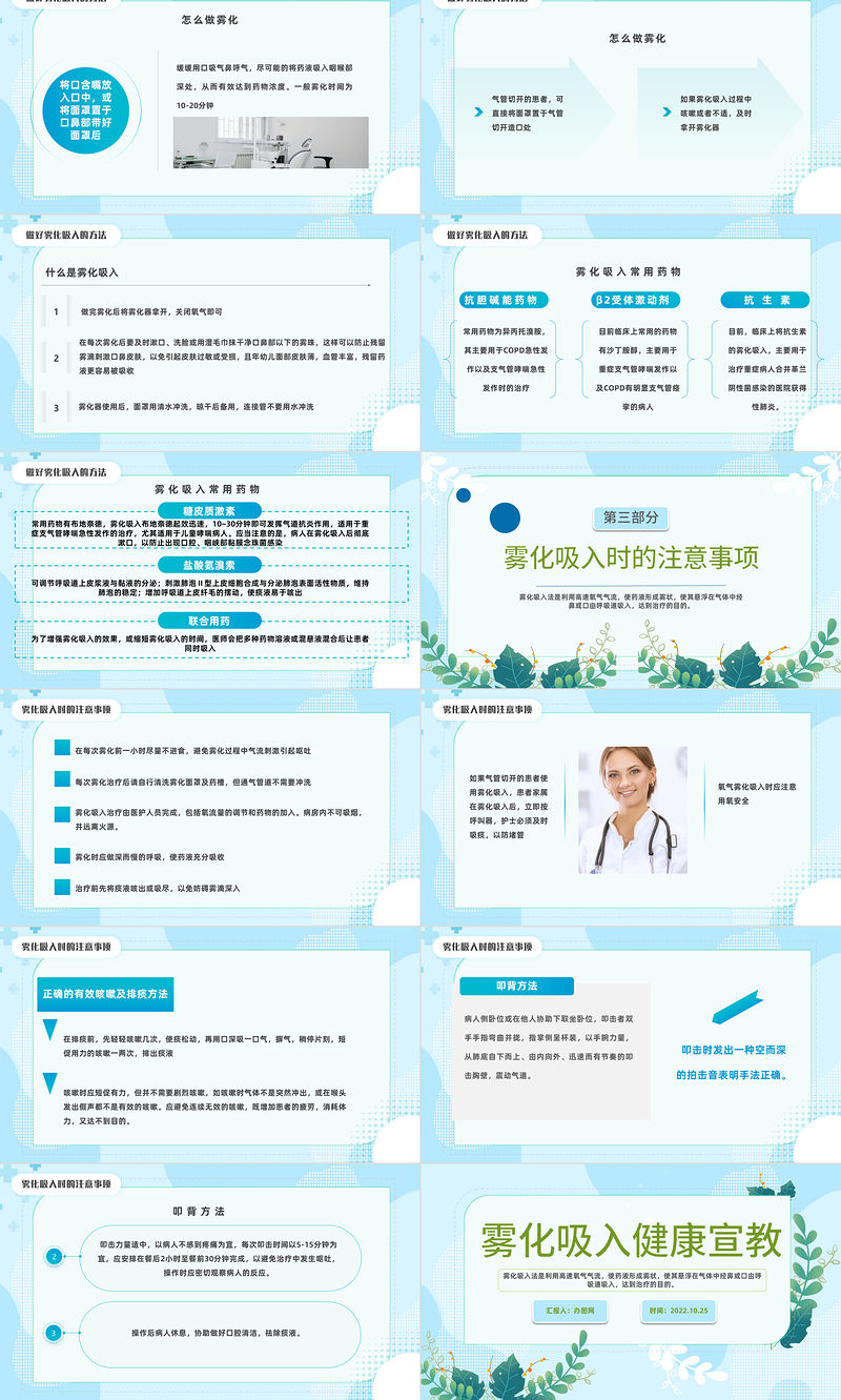 2022霧化吸入健康宣教PPT藍色簡約風霧化吸入健康宣傳課件模板