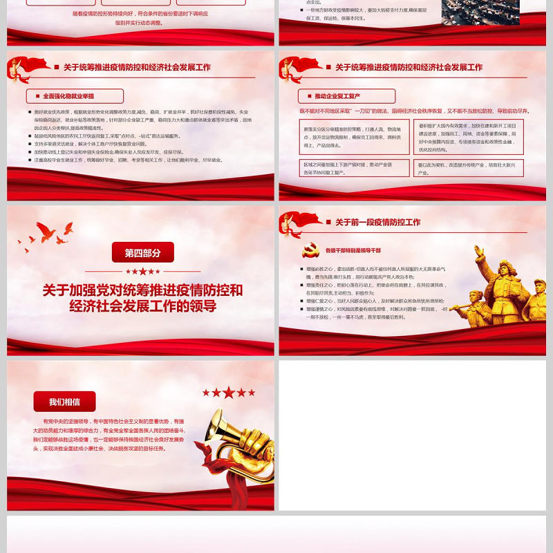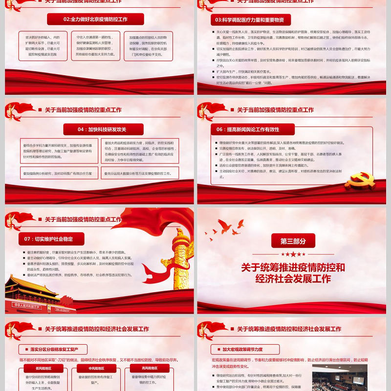 黨政黨建疫情防控和經濟發展PPT模板 Array