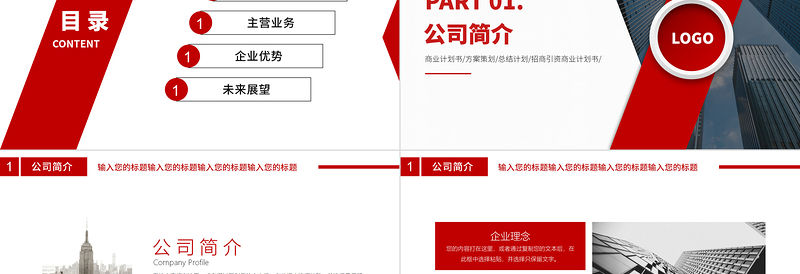 商務簡約大氣公司介紹PPT模板包含
