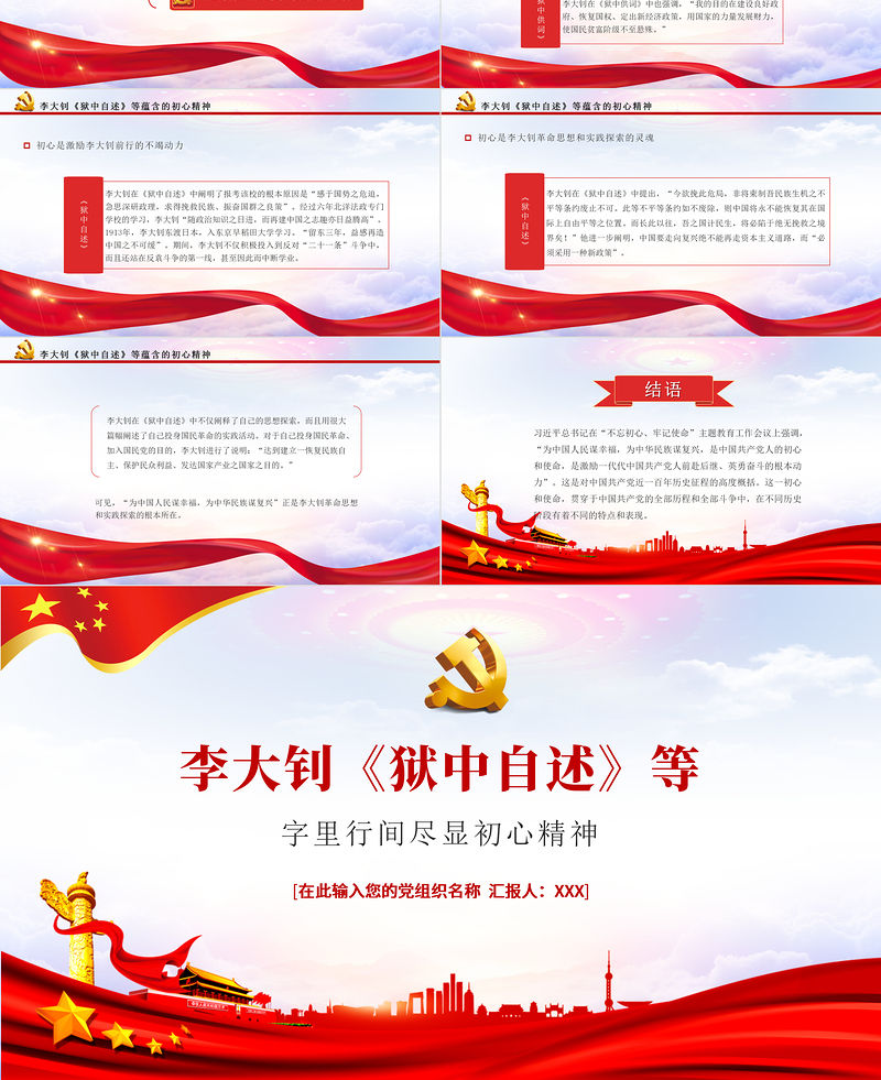 李大釗《獄中自述》等字里行間盡顯初心精神[在此輸入您的黨組織名稱 匯報人:XXX]