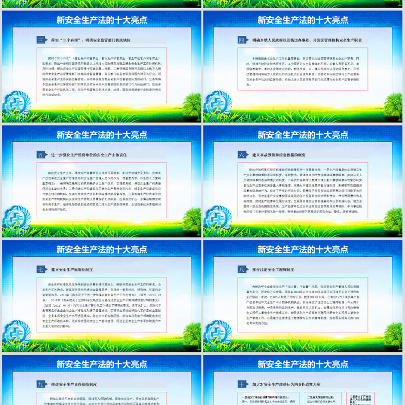 新安全生產法的十大亮點 2014年8月31日公布的新安全生產法(簡稱新法),認真貫徹落實關于安全生產工作一系列重要指示精神,從強化安全生產工作的擺位、進一步落實生產經營單位主體責任,政府安全監管定位和加強基層執法力量、強化安全生產責任追究等四個方面入手,著眼于安全生產現實問題和發展要求,補充完善了相關法律制度規定,主要有十大亮點。
