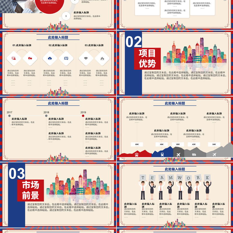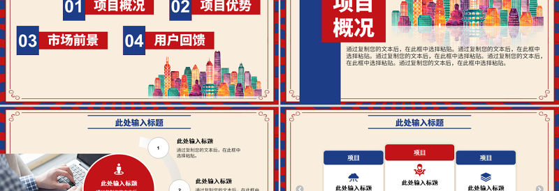 原創(chuàng)紅藍(lán)色建筑類(lèi)簡(jiǎn)約項(xiàng)目介紹通用PPT模板-版權(quán)可商用