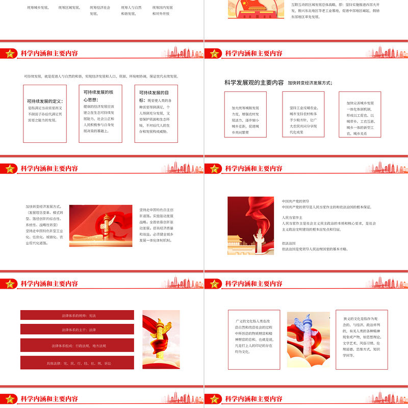 全面協調可持續:全面是指各個方面都發展,大力推進社會主義經濟、政治、文化、社會的全面發展。協調是指各個方面的發展要相互適應,要促進現代化建設的各個環節和方面相協調,促進生產力與生產關系、 經濟基礎與上層建筑相協調。 可持續是指發展進程要有持久性和連續性。我們不要不計代價,竭澤而漁式的發展,要建設以資源環境承載力為基礎,以自然規律為準則,以可持續發展為目標的資源節約型和環境友好型社會。