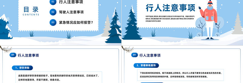 2022冬季出行安全第一PPT藍色卡通風冬季交通安全主題班會課件模板