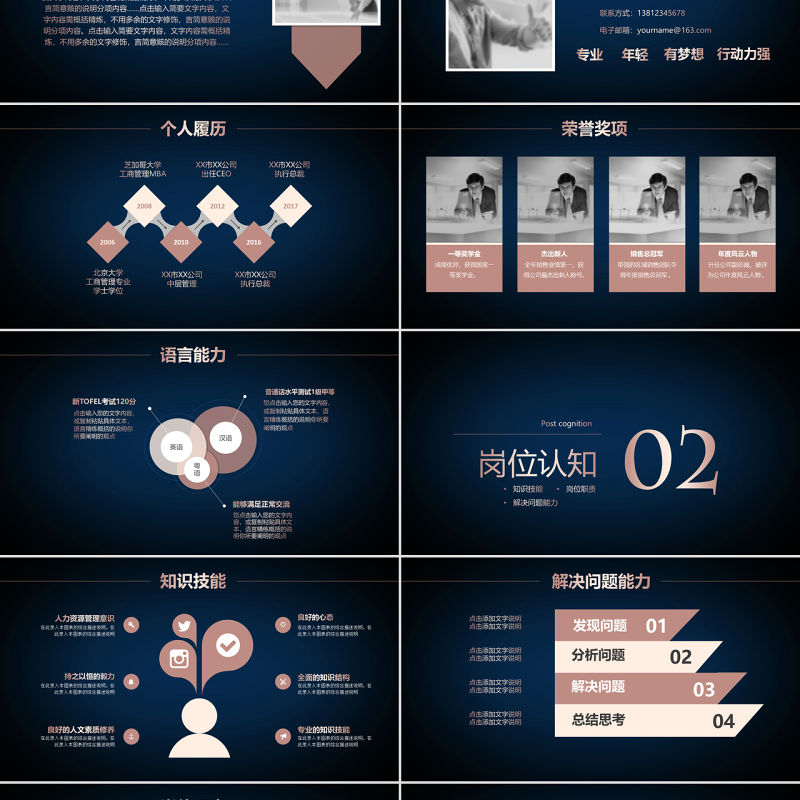 商務通用個人求職簡歷崗位競聘述職演講報告自我介紹ppt模板