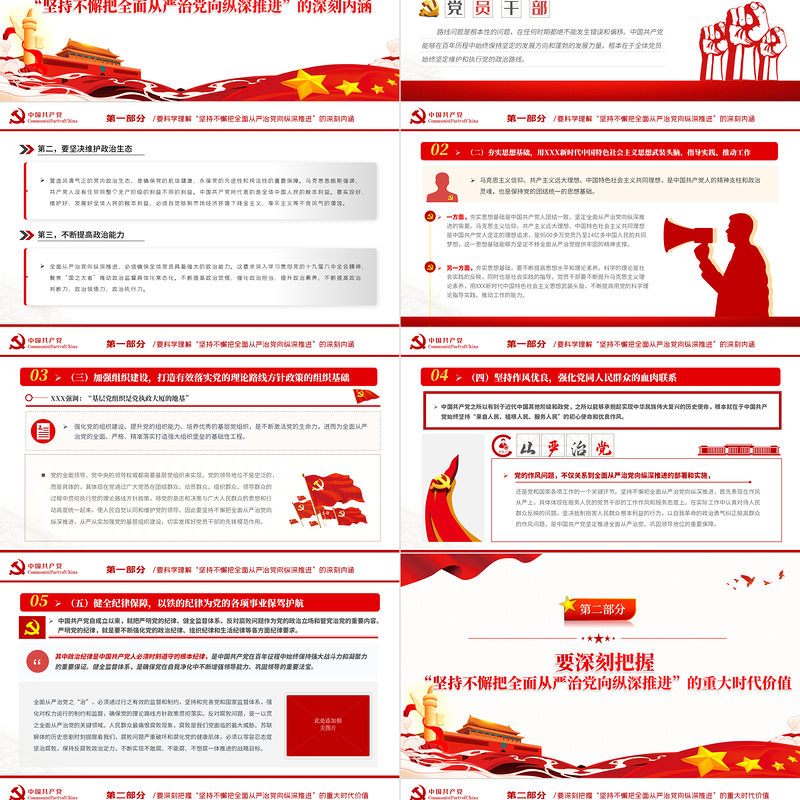 抓牢五個一定要堅持不懈把全面從嚴治黨向縱深推進PPT紅色大氣風2022年黨支部教育專題黨課課件模板 Array