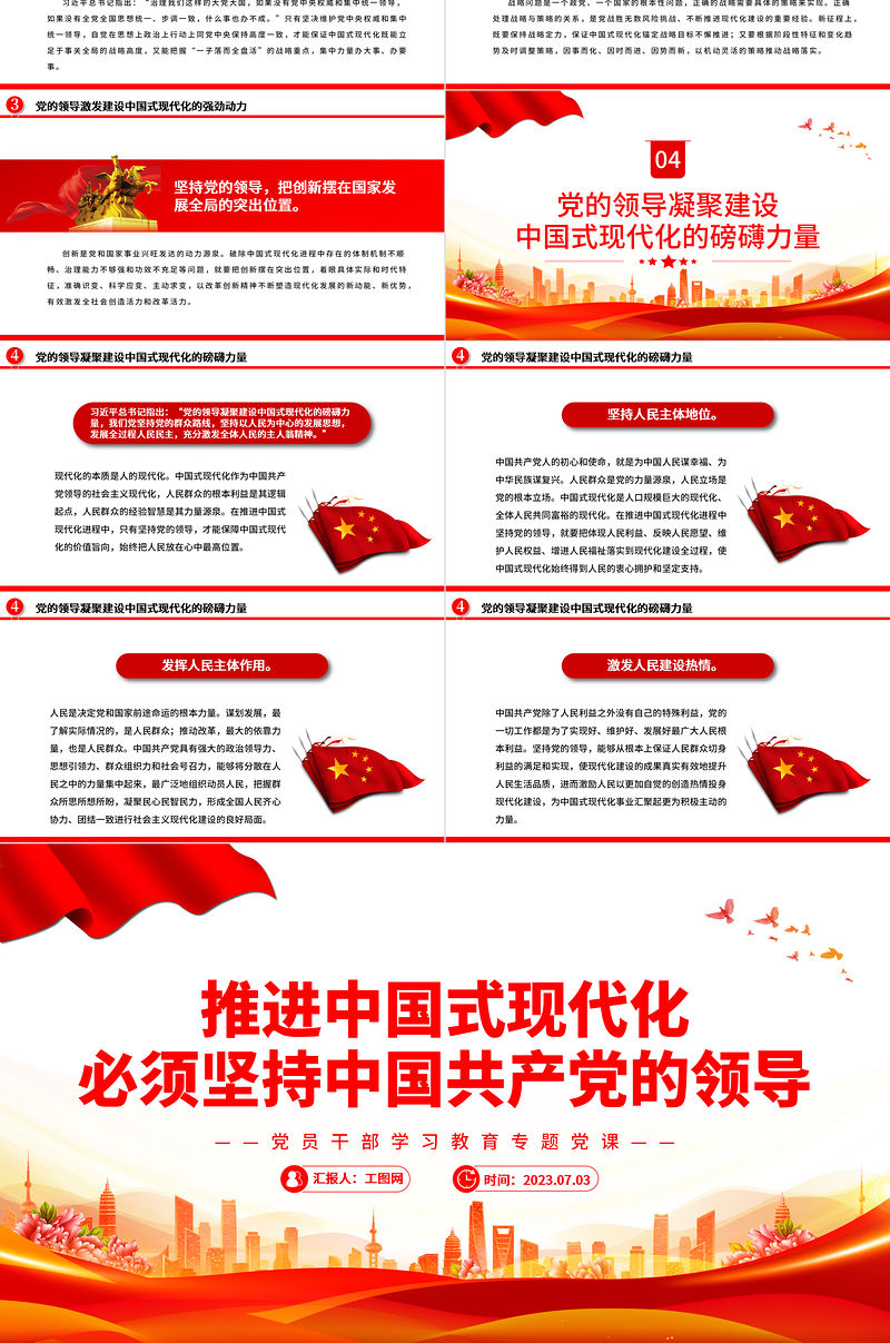 工圖網提供2023推進中國式現代化必須堅持中國共產黨的領導PPT大氣精美風黨員干部學習教育專題黨課課件供會員免費下載。更多精彩黨課PPT素材,盡在工圖網。