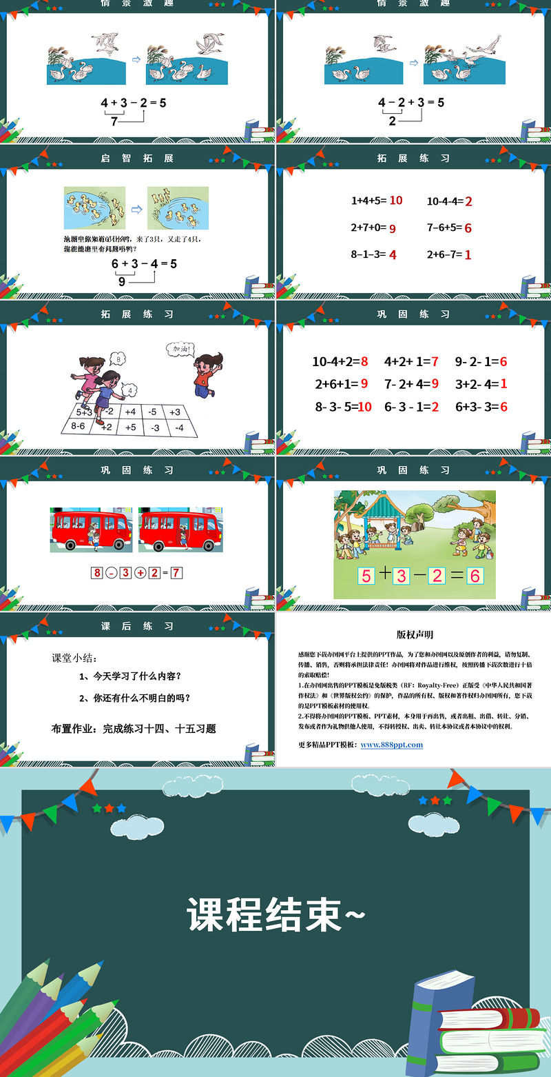 工圖網(wǎng)提供人教版小學(xué)一年級數(shù)學(xué)上冊第五課第四課時:6~10的認(rèn)識和加減法——連加連減、加減混合(含配套教案)課件PPT供會員免費(fèi)下載。更多精彩黨課PPT素材,盡在工圖網(wǎng)。