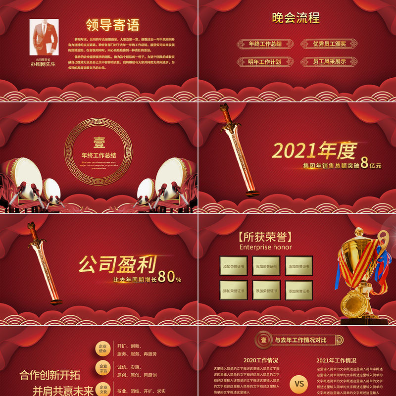 2022虎年誓師大會PPT震撼炫酷企業年會年終員工表彰大會頒獎典禮模板包含