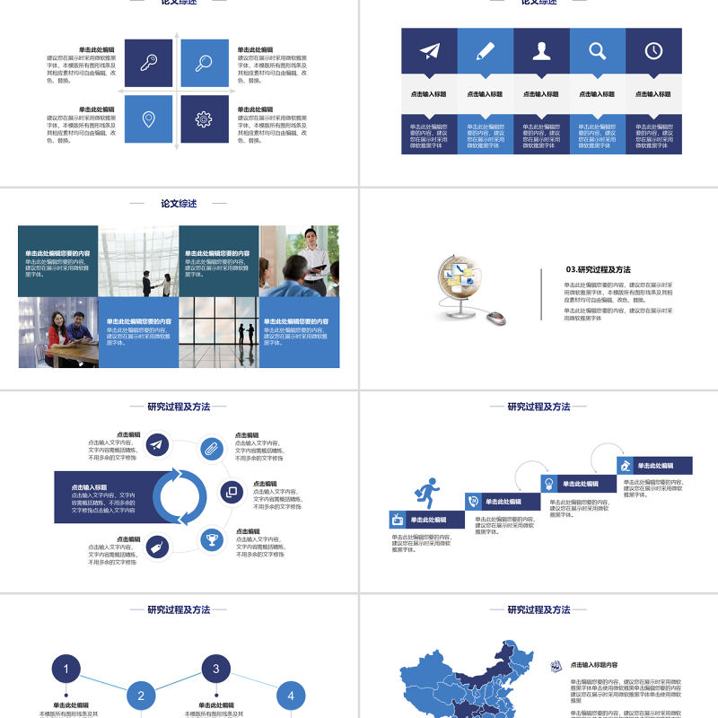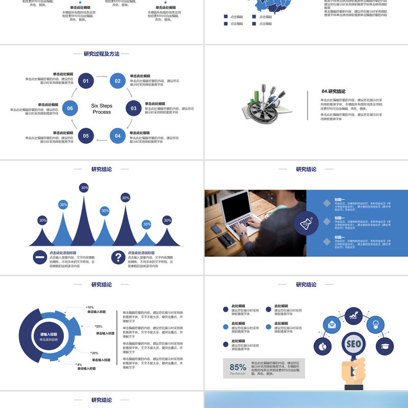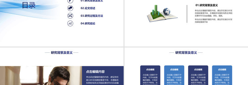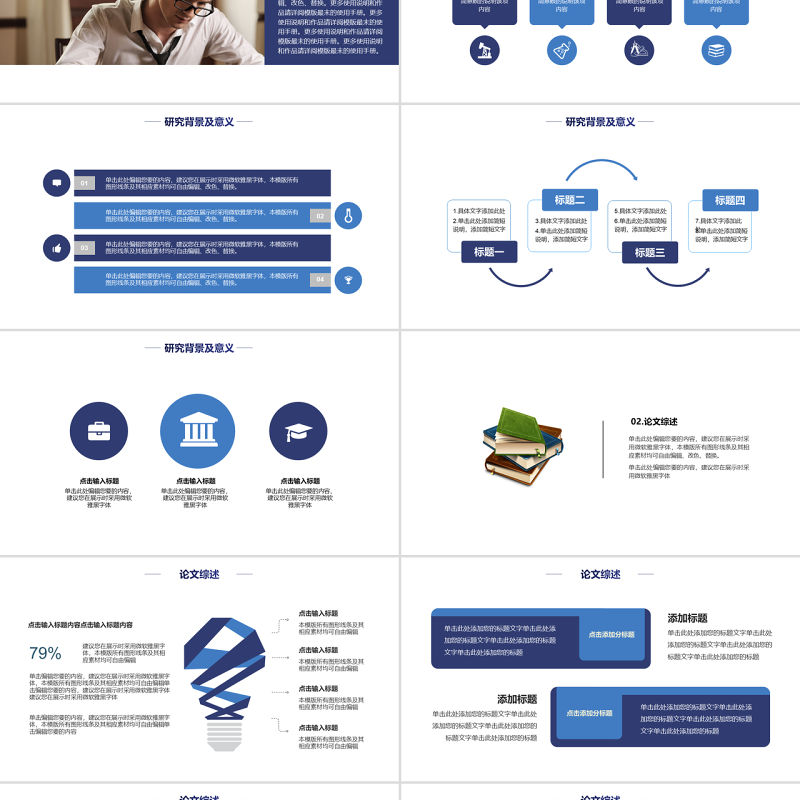 深藍色大學生研究生畢業論文答辯PPT模板包含