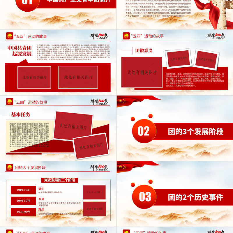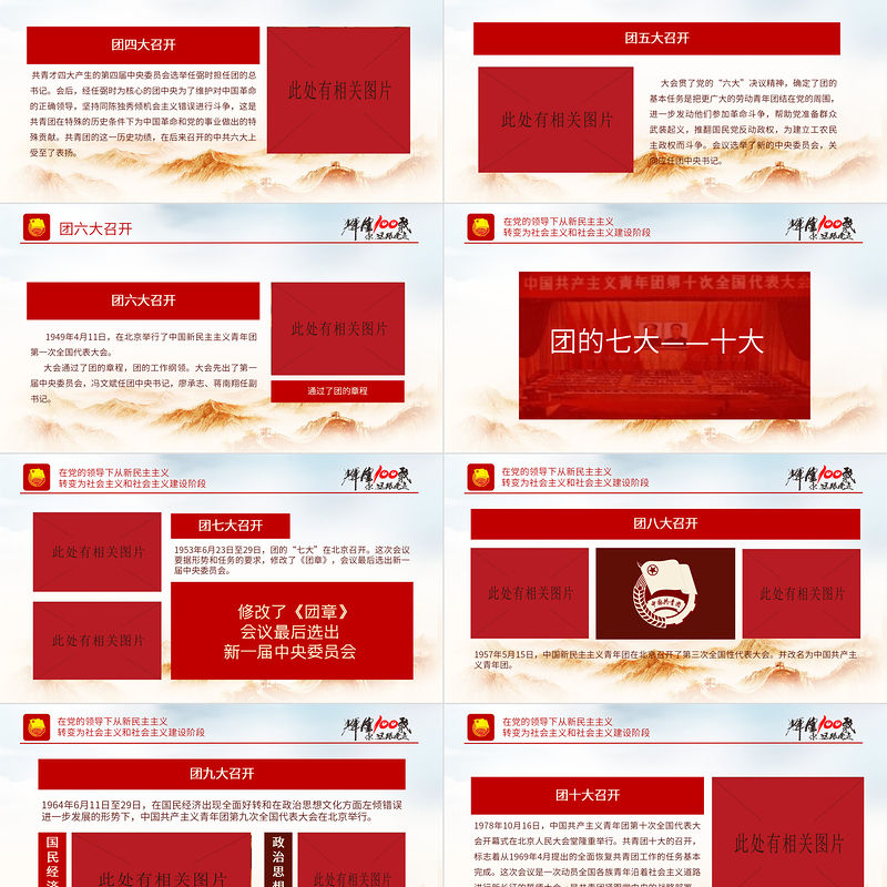 百年光輝歷程中國共青團團史PPT紅色精品慶祝共青團團史100周年專題黨課課件模板下載 Array