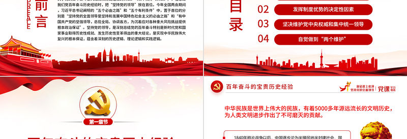 目 錄010203發揮制度優勢的決定性因素堅決維護黨中央權威和集中統一領導百年奮斗的寶貴歷史經驗04自覺做到“兩個維護”