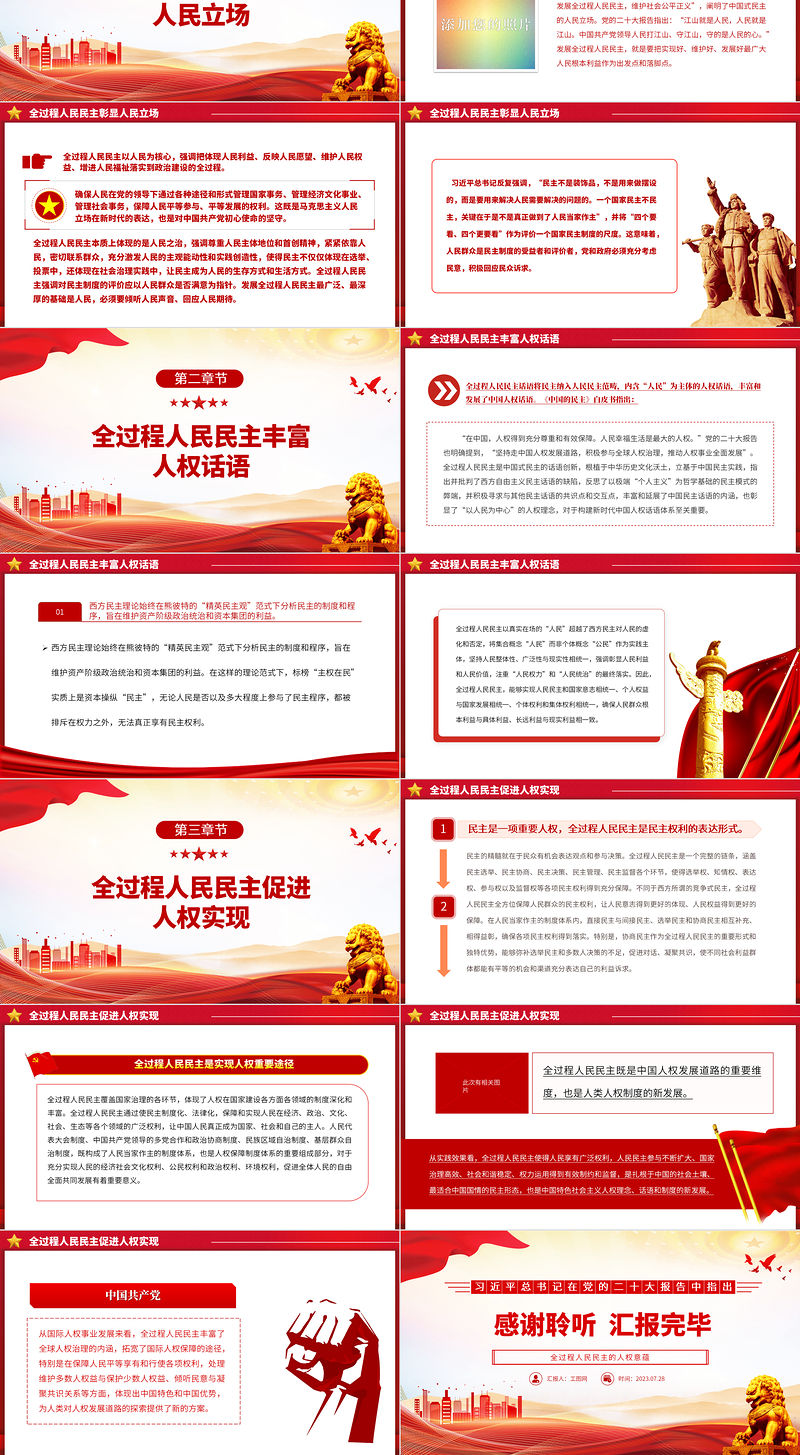 2023全過程人民民主的人權意蘊PPT大氣精美風黨員干部學習教育專題黨課課件 Array