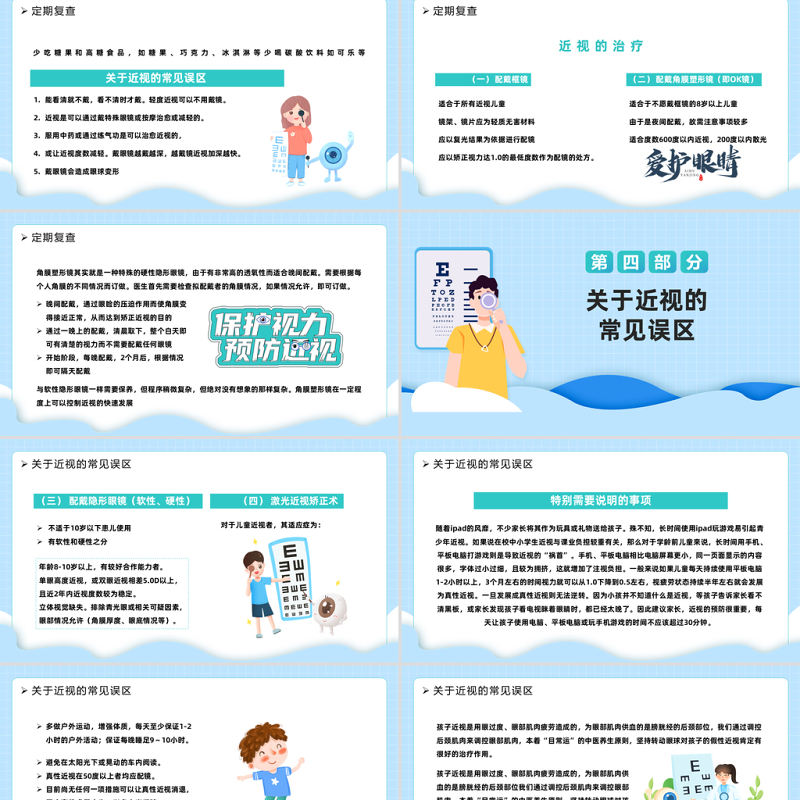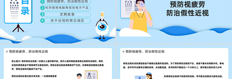 2022保護眼睛預防近視卡通風中小學生預防近視講堂主題班會課件模板