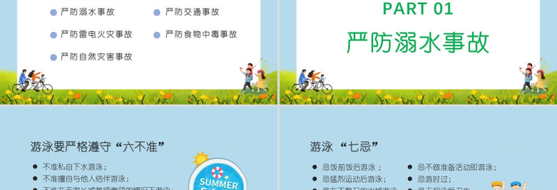 2021卡通暑假安全教育主題班會(huì)PPT Array