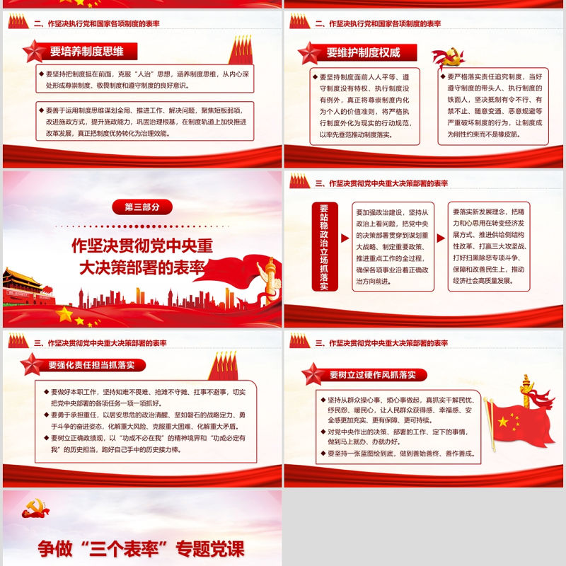紅色黨政風爭做三個表率夯實機關黨建專題教育黨課PPT,三個表率,黨課,專題黨課,黨員教育 Array