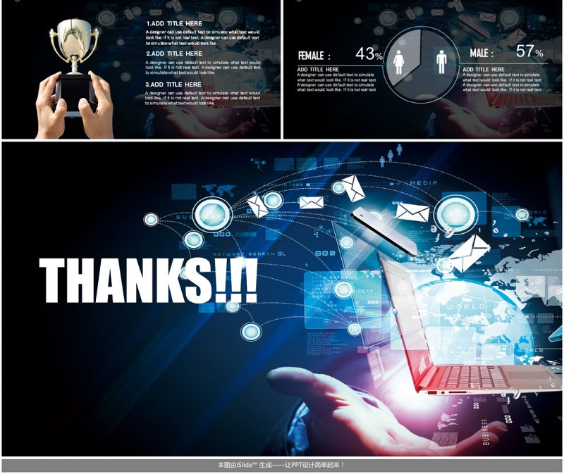 大氣簡潔互聯網大數據時尚科技PPT模板包含