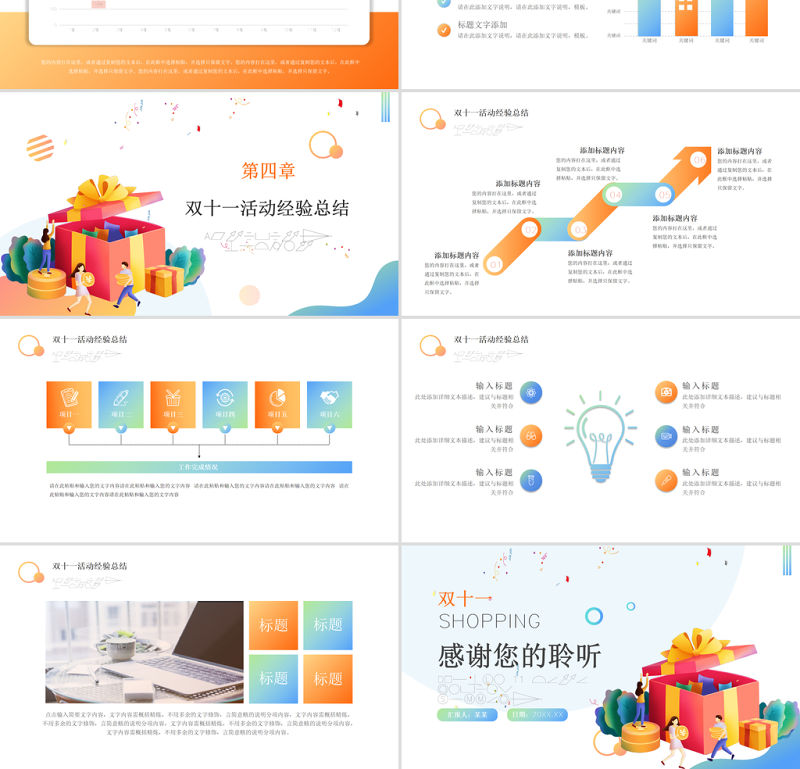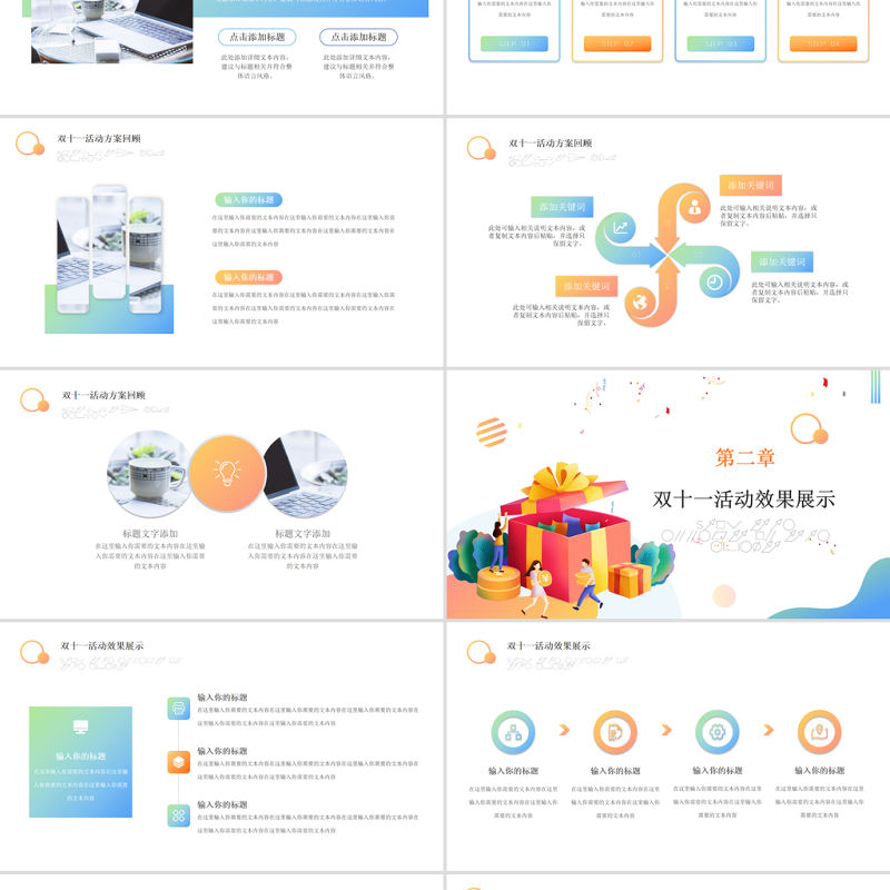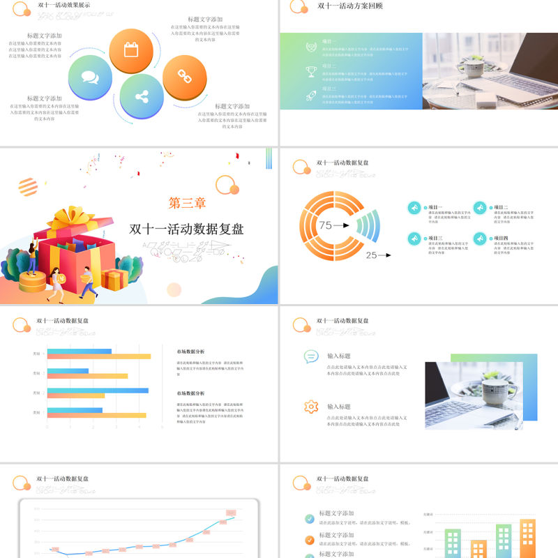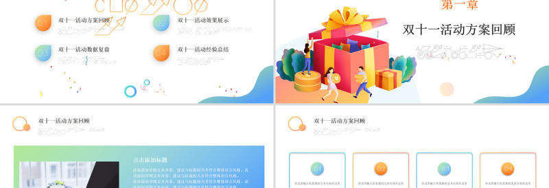 雙十一 數據復盤 PPT 扁平風 矢量 時尚雙11 電商購物節 數據分析 匯總模板 Array