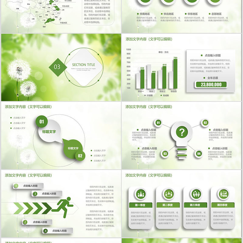 2017綠色清新簡約工作總結ppt模板幻燈片