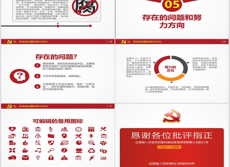 五、存在的問題和努力方向可編輯的備用圖標
