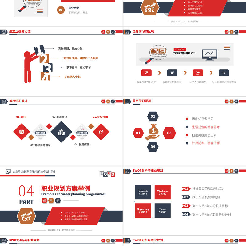 企業培訓/團隊管理/營銷技巧培訓課件建立正確的心態善用學習渠道選擇學習的區域采取有效的方法職業規劃的有效途徑An Effective approach to career planning03PART規劃精彩人生 打造錦繡前程