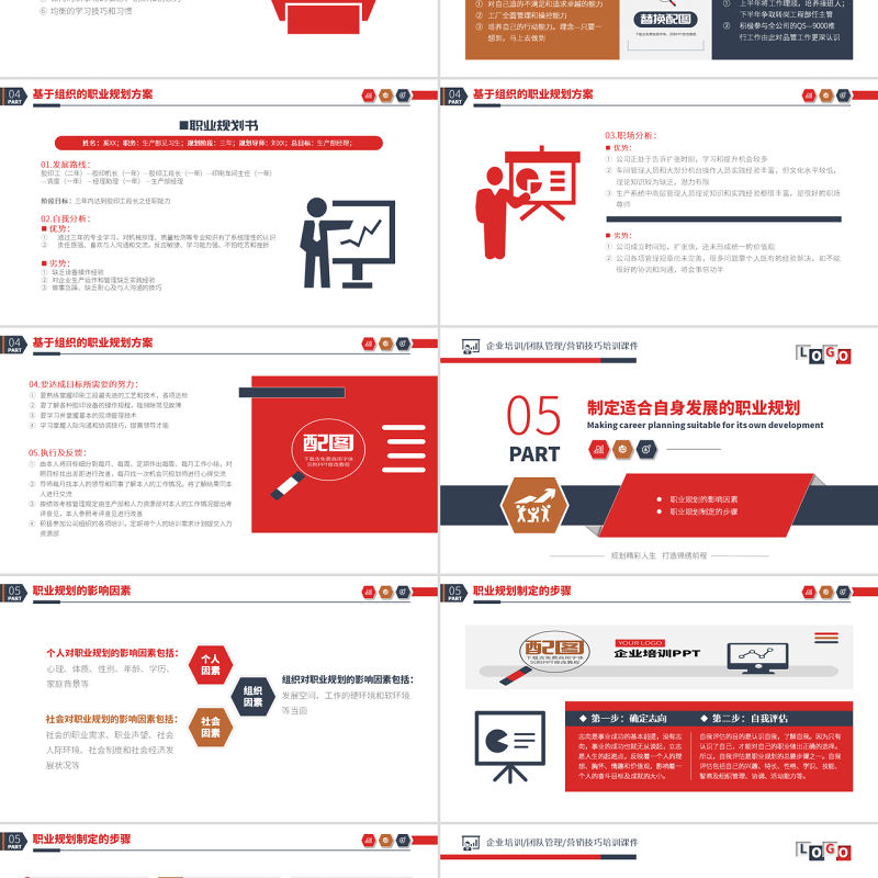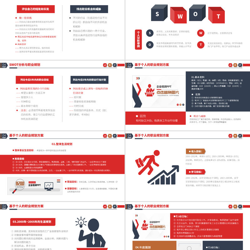 企業培訓/團隊管理/營銷技巧培訓課件SWOT分析與職業規劃基于組織的職業規劃方案基于個人的職業規劃方案職業規劃方案舉例Examples of career planning programmes04PART規劃精彩人生 打造錦繡前程