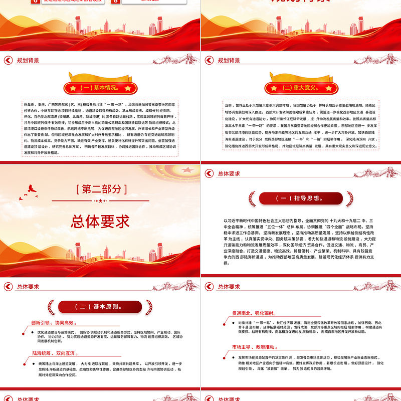 以習近平新時代中國特色社會主義思想為指導,全面貫徹黨的 十九大和十九屆二 中、三中全會精神 ,統籌推進“五位一體”總體 布局,協調推進“四個全面”戰略布局,堅持穩中求進工作總基調, 堅持新發展理念 ,堅持推動高質量發展 ,堅持以供給側結構性改革 為主線 ,認真落實黨中央、國務院決策部署 ,著力加快通道和物流 設施建設 ,大力提升運輸能力和物流發展質量效率 ,深化國際經濟 貿易合作,促進交通、物流 、商貿、產業深度融合,打造交通便捷、物流高效、貿易便利 、產業繁榮、機制科學、具有較強競爭力的西 部陸海新通道 ,為推動西部地區高質量發展、建設現代化經濟體系 提供有力支撐。總體要求