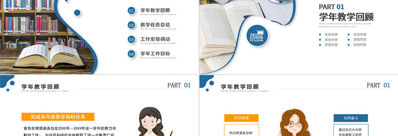 學年教學回顧PART 01添加內容添加內容添加內容添加內容添加內容添加內容The user can demonstrate on a projector or computer, or print the presentation and make it into a film to be used
