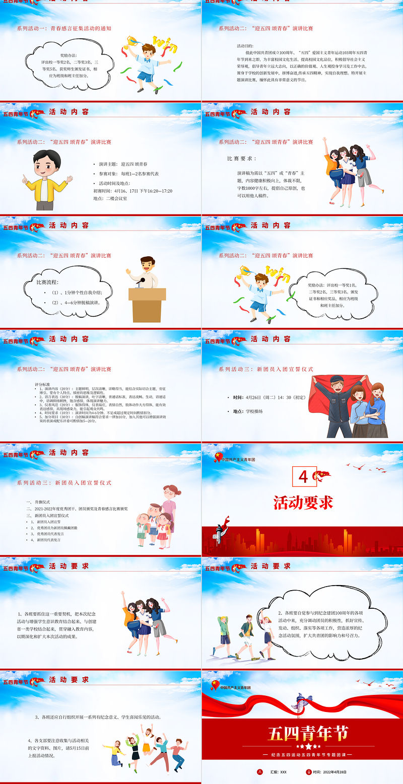 2022五四青年節PPT中國風五四青年節主題活動課件模板
