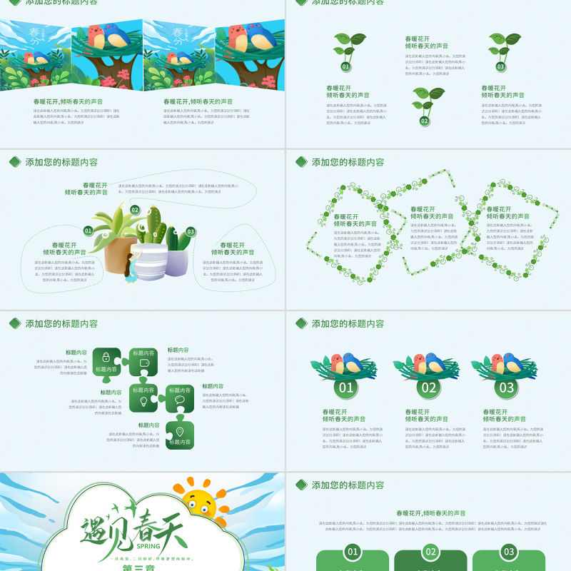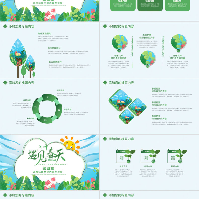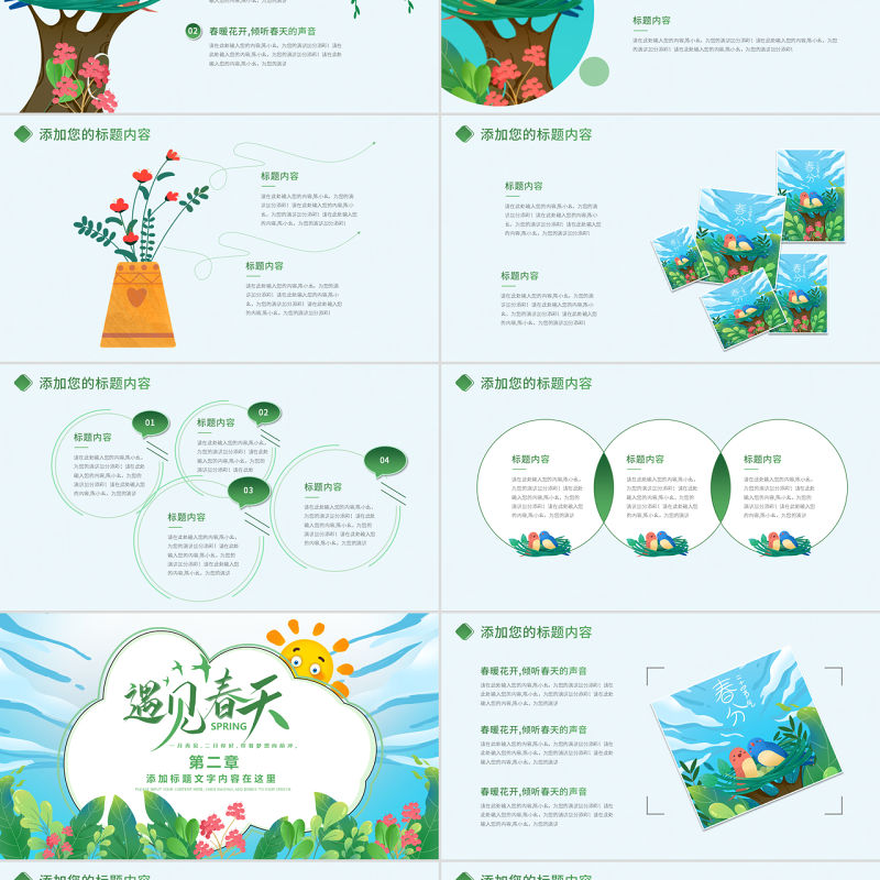 原創綠色小清新春天春季春暖花開植樹PPT環保-版權可商用包含