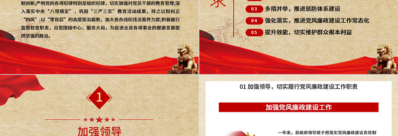黨風廉政建設總結PPT紅色質感黨政部門年終工作總結述職述廉工作報告模板 Array