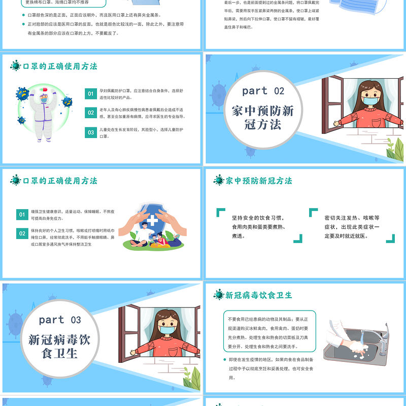 2022居家防護(hù)知識PPT卡通插畫風(fēng)新型冠狀病毒居家防護(hù)主題班會課件模板 Array