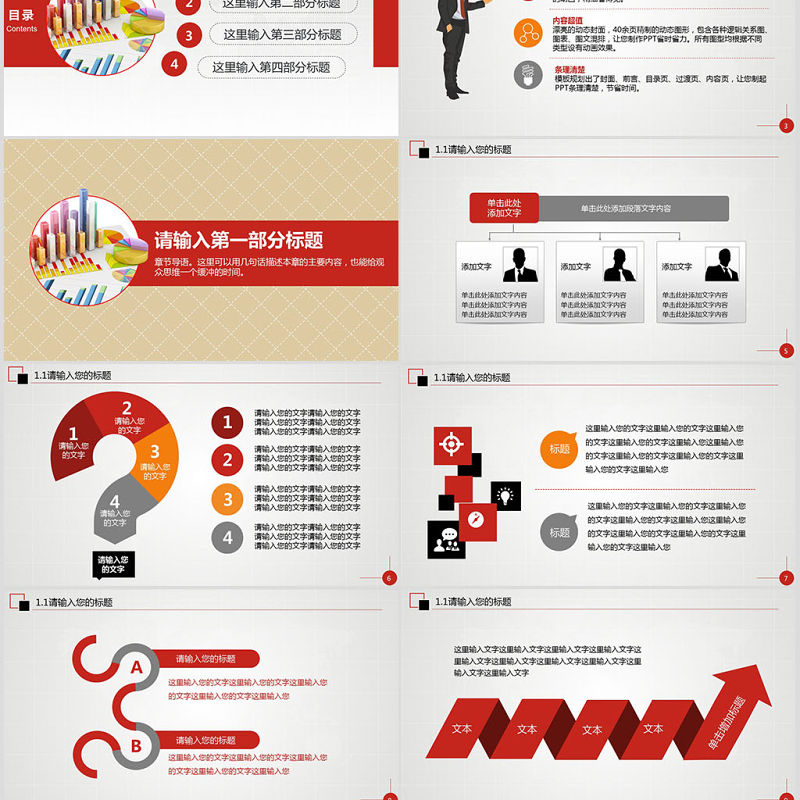 看得見的精細本模板從封面到內頁,從圖形到動畫都經(jīng)過精心打磨,精心構圖,版式工整,實用易用。封面、目錄、過渡頁均設有較強視覺效果的動畫,精細看得見。內容超值漂亮的動態(tài)封面,40余頁精制的動態(tài)圖形,包含各種邏輯關系圖、圖表、圖文混排,讓您制作PPT省時省力。所有圖型均根據(jù)不同類型設有動畫效果。條理清楚模板規(guī)劃出了封面、前言、目錄頁、過渡頁、內容頁,讓您制起PPT條理清楚,節(jié)省時間。模板簡要說明