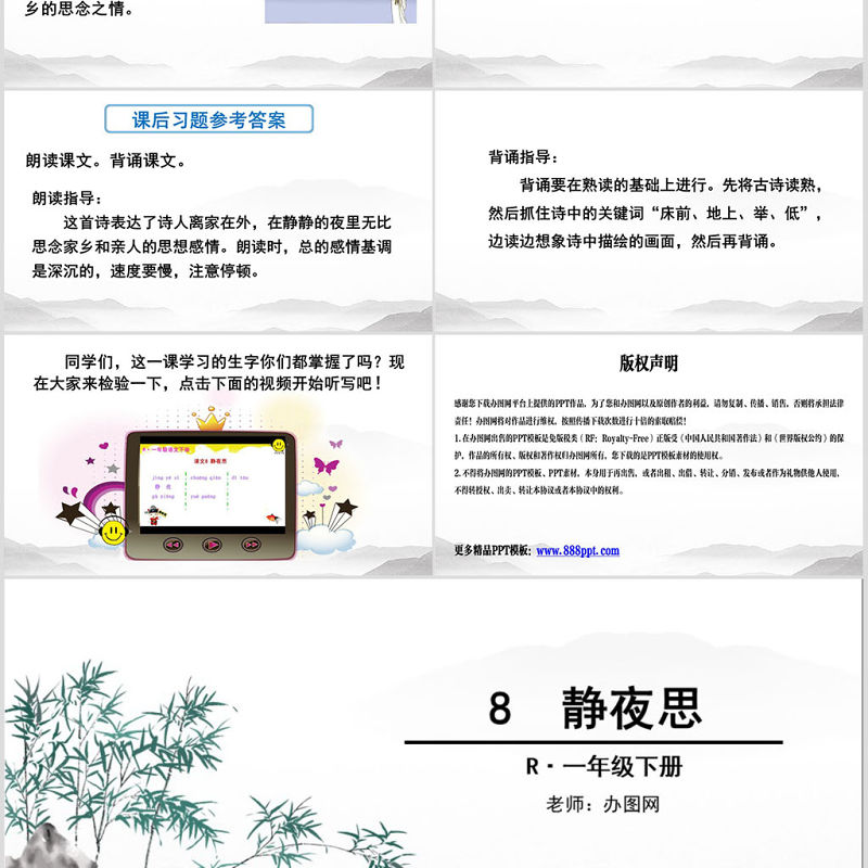 R·一年級下冊8 靜夜思老師:辦圖網
