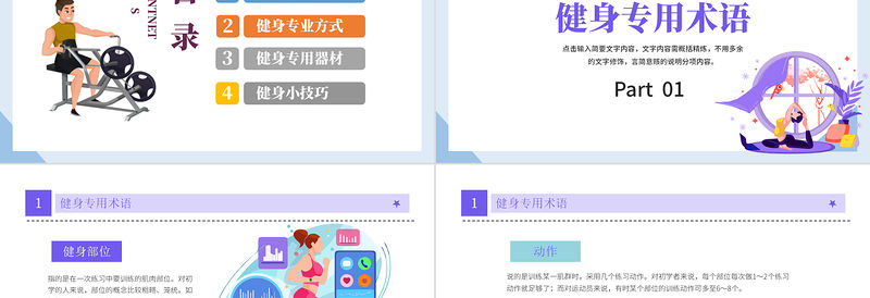 Part 01健身專用術語點擊輸入簡要文字內容,文字內容需概括精煉,不用多余的文字修飾,言簡意賅的說明分項內容。