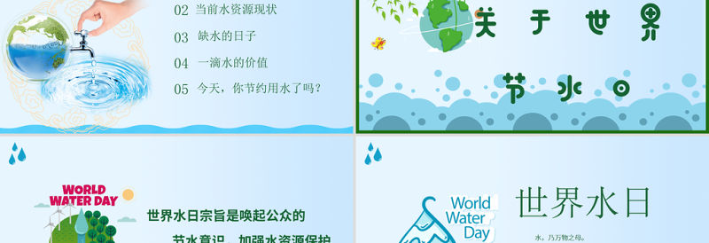 原創水利保護節約水資源自來水世界水日主題班會PPT-版權可商用