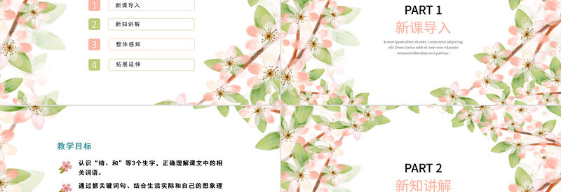 Click here to enter your text and change the color or size of the text. Insert the data text icon, change the picture, and have a good time.contents人教部編版四年級下冊語文PPT模板《三月桃花水》匯報人:辦圖網 時間:2022.X.X