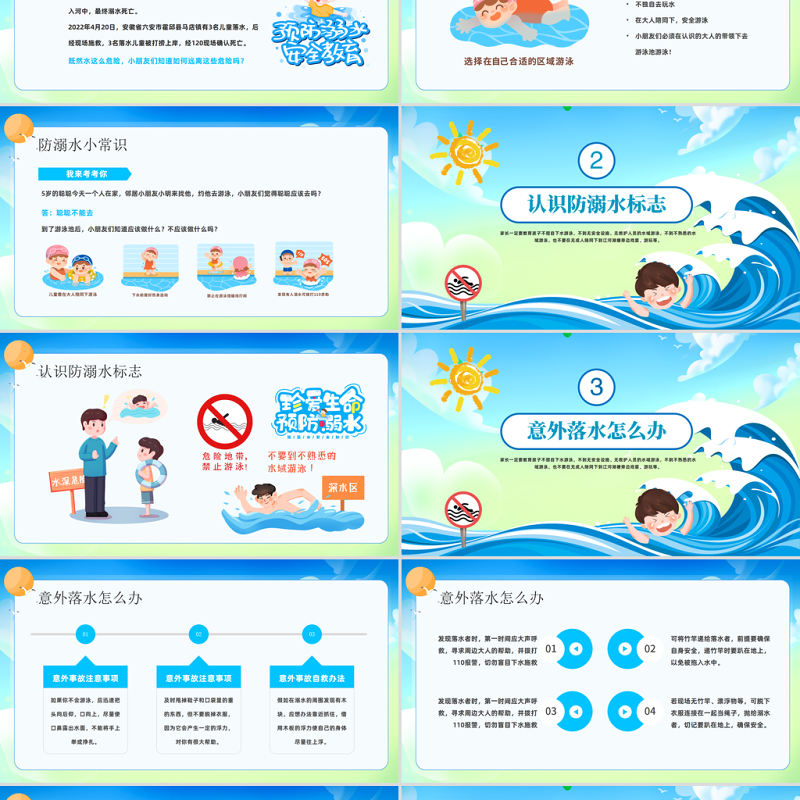 2023重安全防溺水PPT卡通風幼兒園防溺水安全教育主題班會課件模板 Array